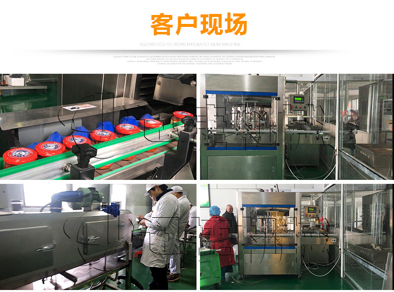 該生產(chǎn)線(xiàn)適合中小口徑三旋、四旋玻璃瓶調(diào)味醬的分裝,適合醬料、含顆粒黏稠物料的灌裝,物料接觸部分均采用316不銹鋼